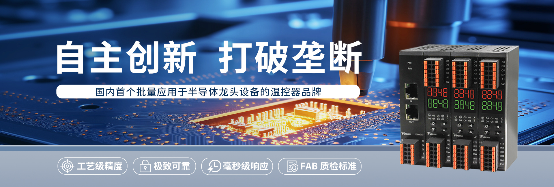 2025年,宇電溫控科技在半導(dǎo)體核心領(lǐng)域?qū)崿F(xiàn)技術(shù)突破,引起媒體的密切關(guān)注。近日,半導(dǎo)體權(quán)威行業(yè)網(wǎng)站集微網(wǎng)還深度訪(fǎng)談了周宇董事長(zhǎng)并推出專(zhuān)題報(bào)道,解析宇電在半導(dǎo)體溫控領(lǐng)域突圍破局的發(fā)展歷程。以下是報(bào)道全文:在半導(dǎo)體產(chǎn)業(yè)的精密制造版圖中,精密溫控技術(shù)猶如一顆隱匿的明珠,雖鮮少站在聚光燈下,卻以其精準(zhǔn)的調(diào)控能力,為芯片制造的各個(gè)環(huán)節(jié)提供著不可或缺的支撐。隨著半導(dǎo)體產(chǎn)業(yè)加速向中國(guó)市場(chǎng)轉(zhuǎn)移,精密溫控技術(shù)的市場(chǎng)需求持續(xù)攀升,中國(guó)本土企業(yè)正以創(chuàng)新實(shí)力重塑市場(chǎng)格局,解決行業(yè)關(guān)鍵元器件“卡脖子”問(wèn)題。廈門(mén)宇電自動(dòng)化科技有限公司(簡(jiǎn)稱(chēng)“宇電溫控科技”)作為國(guó)內(nèi)工業(yè)溫控領(lǐng)域的“隱形冠軍”,歷經(jīng)35載技術(shù)沉淀,成功突破半導(dǎo)體級(jí)溫控技術(shù)壁壘,實(shí)現(xiàn)了從光伏到半導(dǎo)體設(shè)備的全產(chǎn)業(yè)鏈國(guó)產(chǎn)化替代。 近日,筆者有幸采訪(fǎng)到宇電溫控科技董事長(zhǎng)周宇,其深入剖析了半導(dǎo)體精密溫控市場(chǎng)的現(xiàn)狀、宇電的切入契機(jī)與發(fā)展歷程,以及其在半導(dǎo)體領(lǐng)域的創(chuàng)