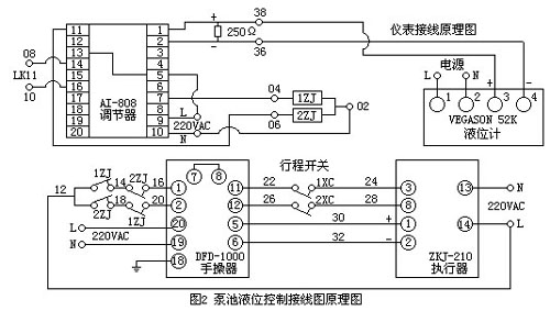泵池液位自動(dòng)控制和接線原理分別如圖1、圖2所示