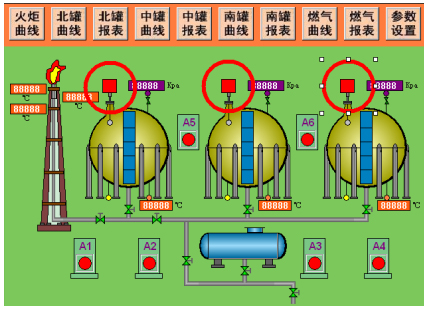 某油田貯藏罐使用一臺AI-301M輸入模塊和觸摸屏電腦CE系統(tǒng)采集貯藏罐高高液位報警的開關(guān)量在監(jiān)控軟件上顯示。